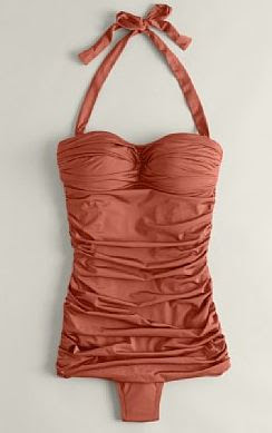 I adore old Hollywood glamour and the one piece above screams Ava Gardner! The rouching softens what you don’t want to see!