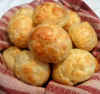 Preheat oven to 400. In a small saucepan, combine the butter, water, and salt. Bring to a boil over high heat; then remove from the heat and stir in the pepper and the flour with a wooden spoon. Reduce the heat to medium. Return to the heat and stir vigorously with a wooden spoon until the mixture becomes very thick and begins to film the bottom of the saucepan, about 1 minute. Remove from the heat. Add the eggs to the mixture one at a time. The dough should have the consistency of a thick mayonnaise. Stir in 1 ½ C of cheese. On a buttered and floured baking sheet drop heaping tablespoonfuls of dough, spacing them 2 inches apart. Sprinkle with remaining ½ C cheese. Bake about 25 minutes, until the puffs swell to almost triple in size and become golden. Cool on a wire rack.