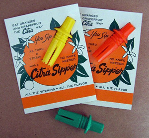 Sip: Every kitchen needs a handful of Citra Sippers. How fantastic to drink directly from an orange. Launched in 1933 at the World’s Fair by the current owner’s grandfather.Try your citra sipper in a Valencia orange and your morning will start out right!